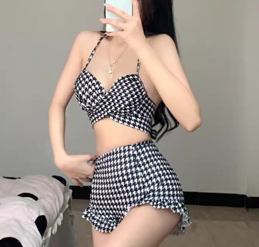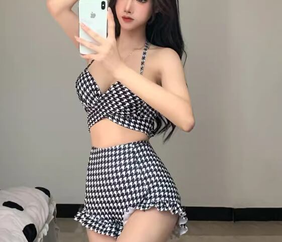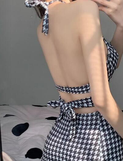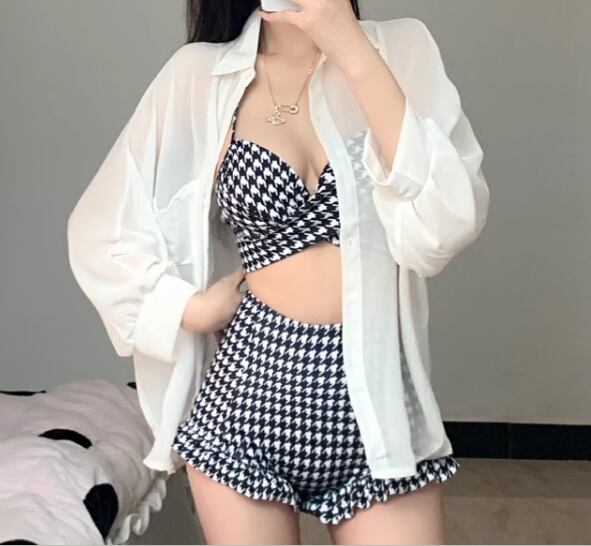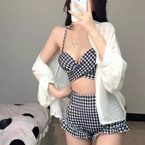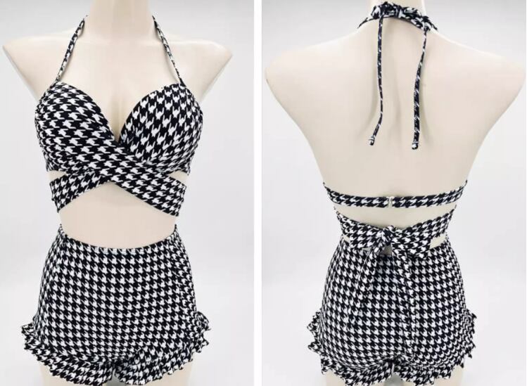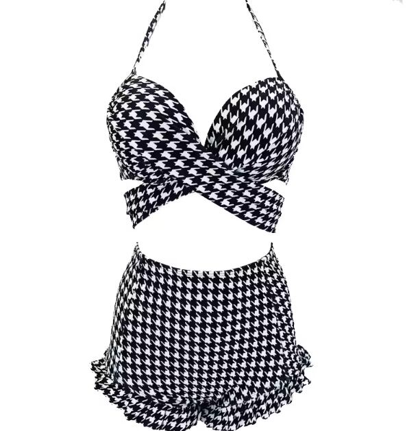 大人可愛い千鳥格子柄が魅力的なセパレート水着。