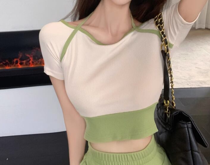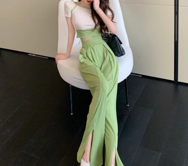 二点セット 上下セット ツーピース レディース トップス パンツ カットソー プルオーバー セットアップ Tシャツ ショート フルレングス 半袖 ラウンドネック ホルターネック スリム 細身 ストレート スリット ウエストゴム かわいい 大人可愛い シンプル カジュアル おしゃれ かっこいい こなれ感 ラフ 個性的 クール 抜け感 キュート ラグジュアリー アクティブ 爽やか 無地 夏 10代 20代 学生 デート お出かけ 美脚 脚長 普段使い 着回し トレンド 流行 フリーサイズ 小さめ グリーン
