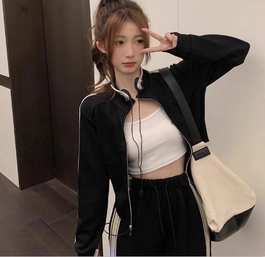 二点セット 上下セット ツーピース レディース スウェット ジャージ セットアップ スポーツウェア フルレングス 長袖 スタンドカラー ファスナー ウエストゴム シンプル カジュアル おしゃれ かっこいい ラフ メンズライク ボーイッシュ スポーティー クール アクティブ ハンサム シック スタイリッシュ 春 秋 ジム 休日 モノトーン スポーツ ダンス ランニング 普段使い 着回し L XL 大きいサイズ ブラック