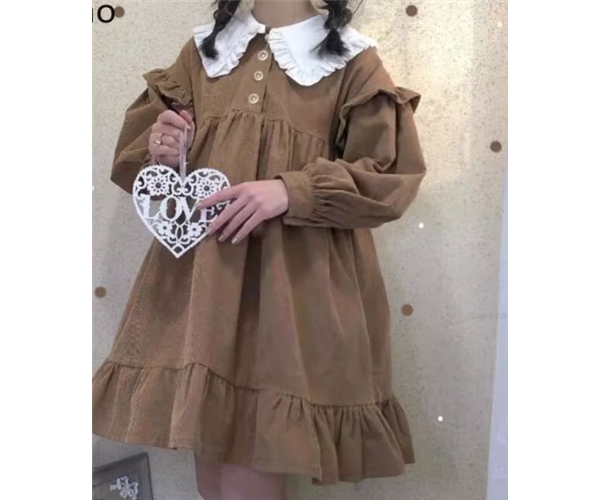 レディース ワンピース プルオーバー ドレス ミニ ショート 膝丈 長袖 襟付き Aライン フェミニン フリル ボタン 切り替えデザイン かわいい シンプル カジュアル 上品 おしゃれ レトロ ガーリー ルーズ エレガント ラブリー キュート ロリータ プリンセス クラシカル シック 高級感 優しい 穏やか フェアリー 無地 秋 10代 20代 学生 デート お出かけ 普段使い 清楚 S M L ゆったりウエスト ブラウン