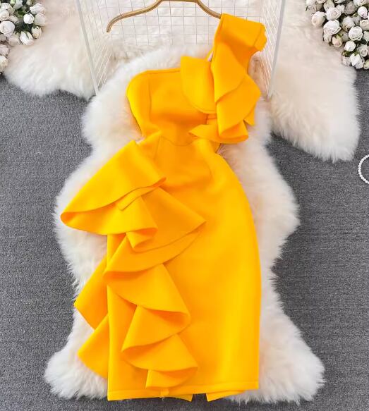 レディース ドレス パーティードレス パーティー 演奏会 発表会 ステージ 舞台 衣装 ホステス ミモレ 袖なし ノースリーブ ワンショル タイト スリム 細身 Aライン スマート フリル ファスナー プルオーバー きれいめ シンプル 大人可愛い 上品 おしゃれ かっこいい クール エレガント 存在感 抜け感 ゴージャス セクシー 華やか ラグジュアリー 高級感 こなれ感 無地 イベント ホテル レストラン デート 食事会 会食 夏 S M L イエロー オレンジ ホワイト ブラック ブルー
