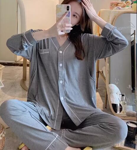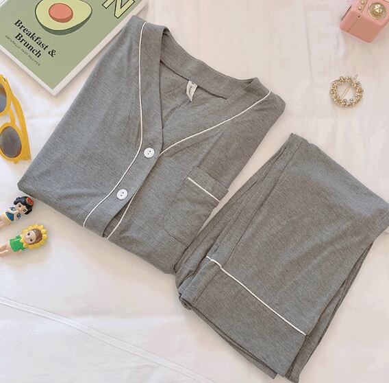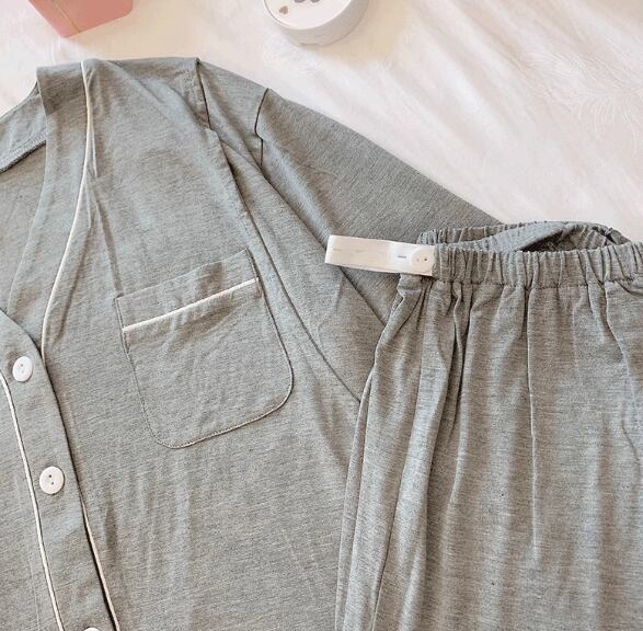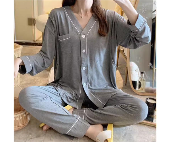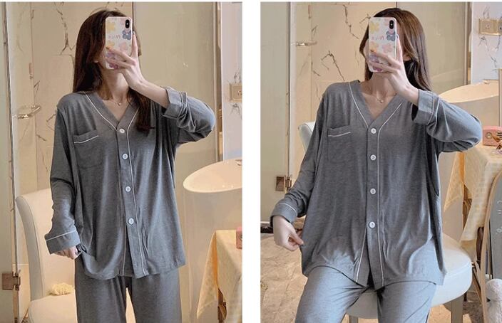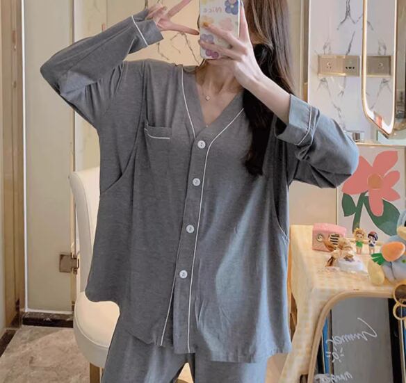 落ち着いたグレーの色味が大人可愛い、妊婦さんや子育て中のママさん用のパジャマ。