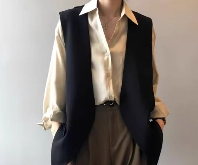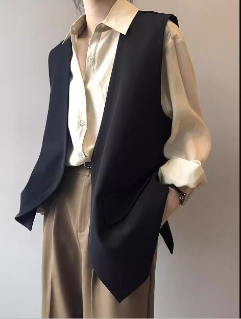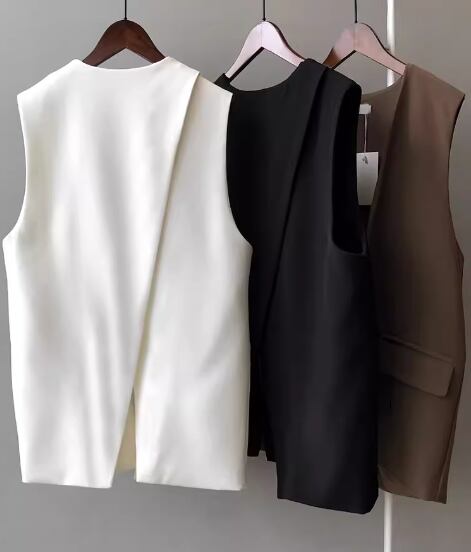 レディース トップス ベスト スーツ ミドル丈 袖なし ノースリーブ バックスリット ポケット ボタンなし 大人可愛い きれいめ シンプル カジュアル 上品 おしゃれ かっこいい レトロ こなれ感 ボーイッシュ ルーズ クール エレガント ラグジュアリー クラシカル ナチュラル 知的 ハンサム シック 高級感 スタイリッシュ 無地 春 秋 ママ OL デート お出かけ 重ね着 韓国 体型カバー 普段使い 着回し レイヤード S M L ゆったり ホワイト ブラック ブラウン