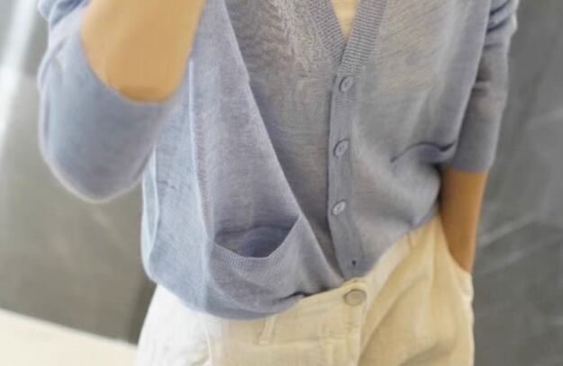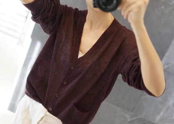 上品で落ち着いた色味が魅力的な長袖のニットカーディガン。