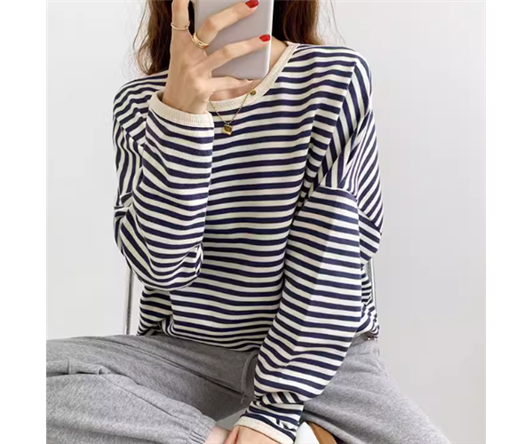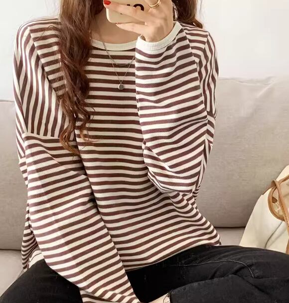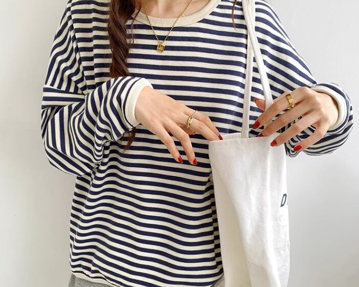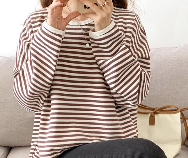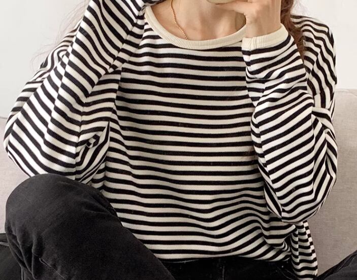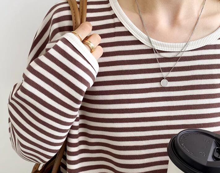 落ち着いた色味×ボーダーが大人可愛い長袖カットソー。