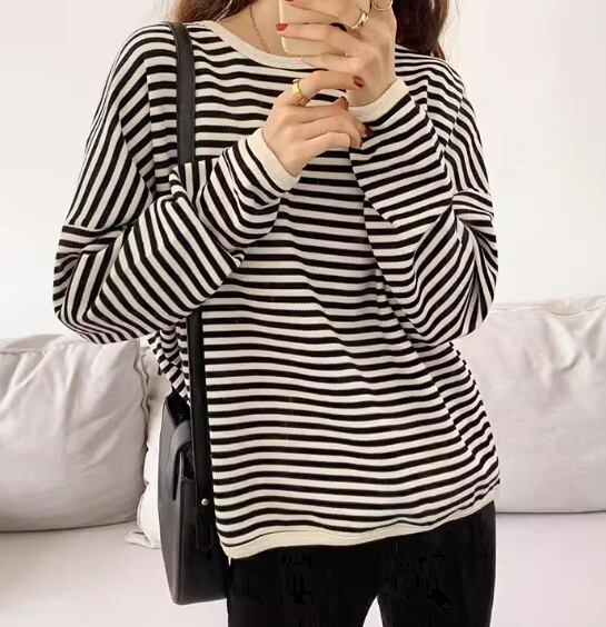 レディース トップス カットソー プルオーバー スウェット Tシャツ ミドル丈 長袖 ドロップショルダー ラウンドネック 薄手 大人可愛い シンプル カジュアル おしゃれ かっこいい レトロ ラフ ボーイッシュ ルーズ クール ナチュラル シック ボーダー 秋 デート お出かけ 普段使い 着回し トレンド 流行 S M L ゆったり ゆる 大きめ オーバーサイズ ブラック ブラウン ネイビー
