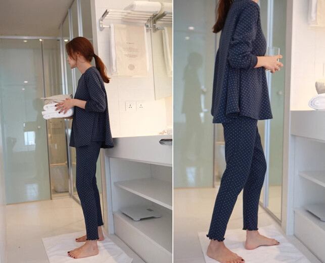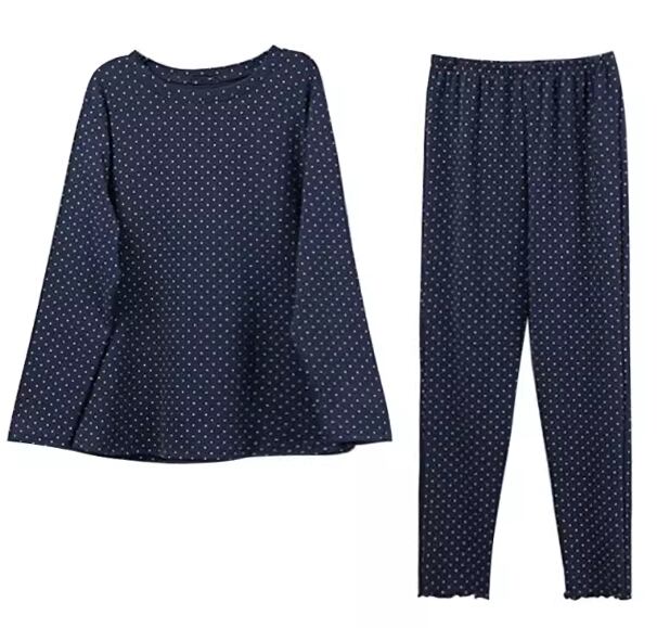 控えめなドット柄が大人可愛い春、秋用のパジャマ。