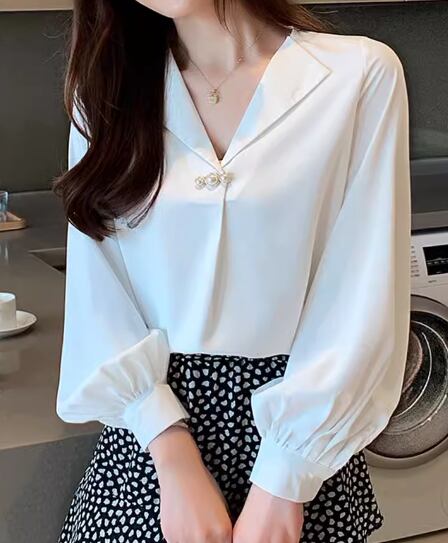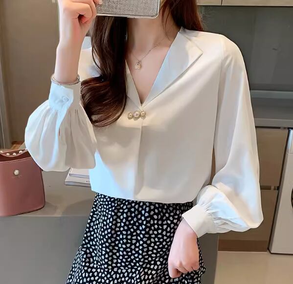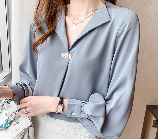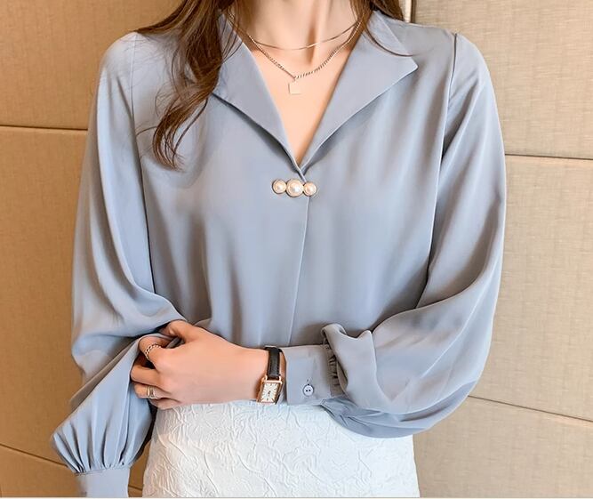 レディース トップス シャツ ブラウス プルオーバー ミドル丈 長袖 Vネック ストレート フェミニン シフォン ボタン パール ビーズ かわいい 大人可愛い きれいめ シンプル 上品 おしゃれ こなれ感 エレガント キュート ラグジュアリー 知的 清潔感 爽やか シック 高級感 優しい 穏やか フェアリー 無地 春 秋 オフィス ビジネス OL 通勤 デート お出かけ 体型カバー 普段使い 着回し 清楚 S M L XL ゆったり ホワイト ブルー