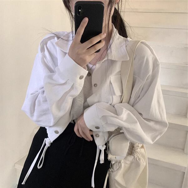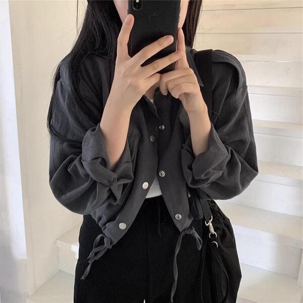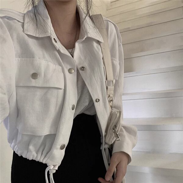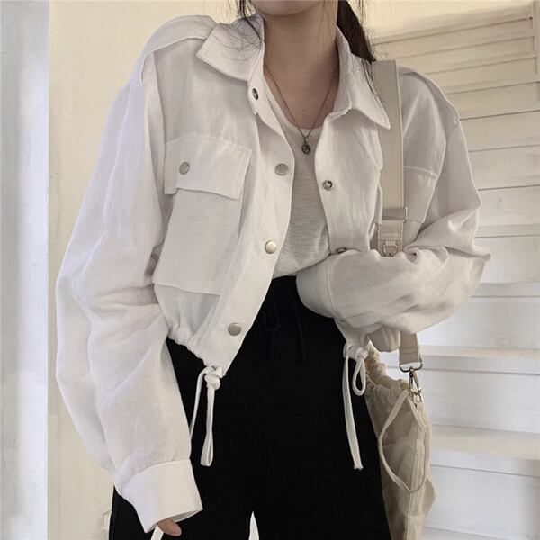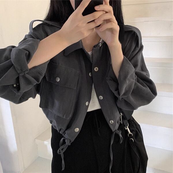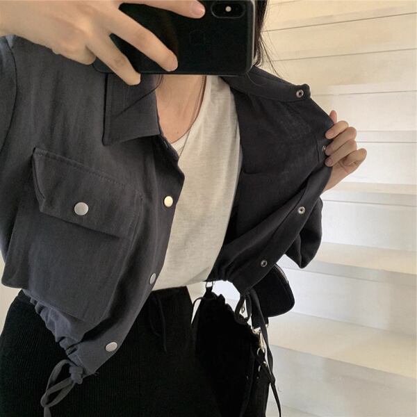 2色展開レトロカジュアルショートジャケット レディース トップス ジャケット カーディガン ブルゾン アウター 上着 ショート クロップド丈 長袖 ステンカラー ワイド ポケット ドロスト ボタン かわいい 大人可愛い カジュアル 上品 かっこいい こなれ感 ラフ アクティブ オフィスカジュアル 無地 シーズンレス 10代 20代 オフィス 通勤 アウトドア キャンプ 公園 ガーデン ショッピング ツーリング 普段使い トレンド