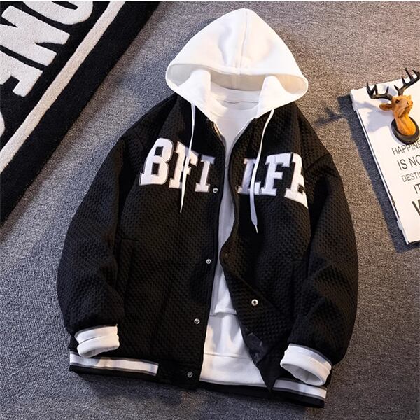 フード付きスタジャンは、ストリートハンサムな雰囲気漂うレトロなフードが特徴。フライトジャケットのデザインを取り入れたジッパーアウターウェアで、メンズのカジュアルスタイルにピッタリ。洗練されたルックスと機能性を兼ね備え、多彩なシーンで活躍。スタイリッシュな着こなしを実現します。