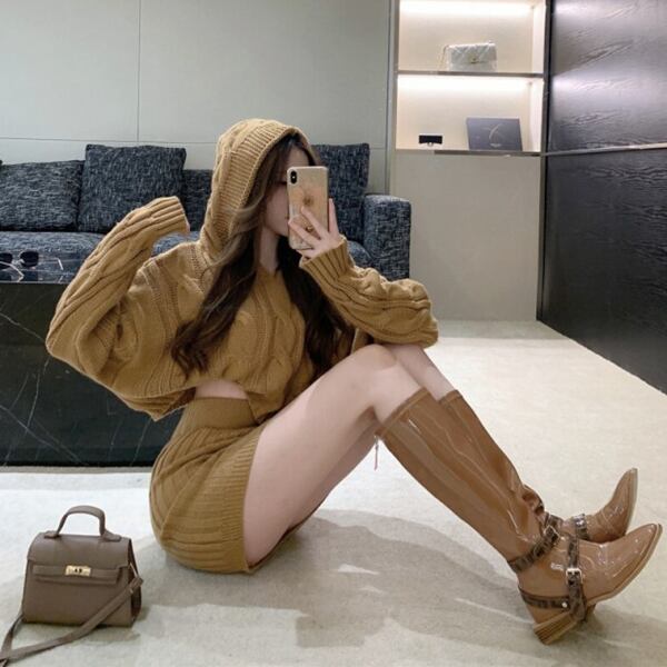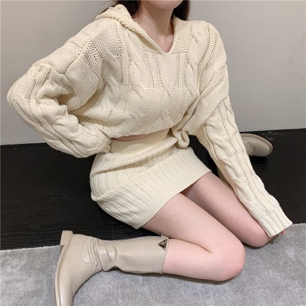 4カラー スーツドレス フード付きニットツイストセーター&ストレッチヒップスカートセット二点セット 上下セット ツーピース レディース スカート トップス ニット セーター スーツ セットアップ ドレス ニットスカート ミニスカート ミニ 膝上 長袖 フード タイト スリム フェミニン ケーブルニット リブニット 伸縮性 大人可愛い カジュアル 上品 ガーリー ラブリー キュート 無地 春 秋 冬 10代 20代 通勤 通学 アウトドア ガーデン ショッピング カフェ トレンド インスタ映え フィット