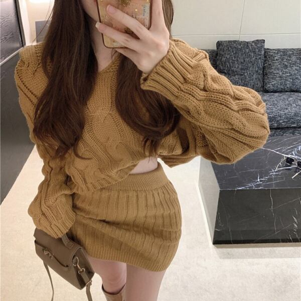レトロスタイルが魅力のツーピーススーツドレス。上品なニットツイストセーターとスタイリッシュなストレッチヒップスカートがセットになっています。洗練されたデザインで、着るだけでおしゃれな印象を発散します。春秋冬の季節にぴったりなアイテムで、忙しい朝でもスタイリングに悩まずに済みますネ。自信を持って着られる一着で、日常のファッションに華を添えてくれますヨ。