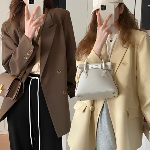 2カラー スリムハーフ/ジャケットストリート&ルーズカジュアルコート レディース トップス ジャケット ミディアム テーラードジャケット ブレザー ショート ハーフ ミドル丈 長袖 スーツカラー セミフレア Aライン フォーマル シンプル カジュアル かっこいい ラフ クール エレガント 知的 無地 春 秋 冬 20代 30代 オフィス 通勤 ガーデン ショッピング 韓国 トレンド ゆったり