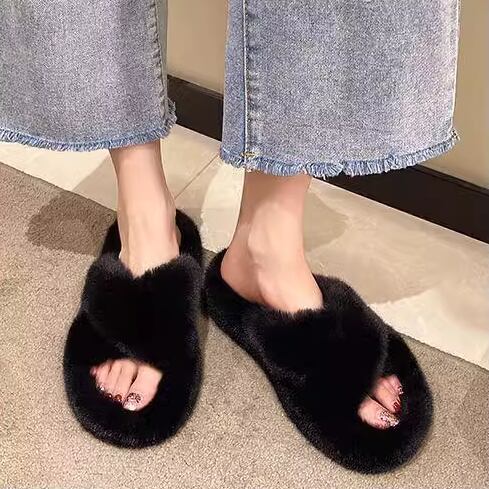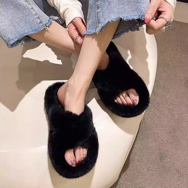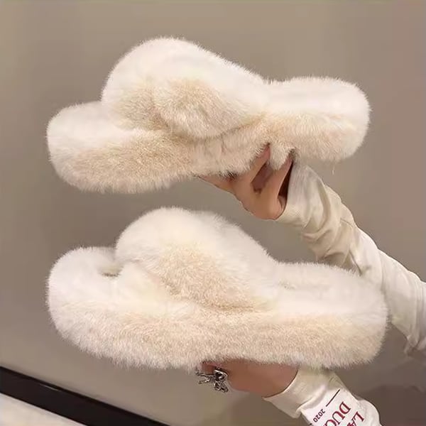 3カラー 毛皮のようなクロスベルト厚底スリッパ レディース スリッパ 1cm フラット ラバーソール ラウンドトゥ もこもこ ふわふわ 幅広 柔らかい ボア かわいい 大人可愛い 上品 おしゃれ エレガント ラブリー ガーリー シーズンレス 無地 旅行 ホテル 室内 デイリー 普段使い トレンド ホワイト ブラック ベージュ