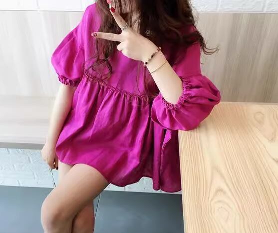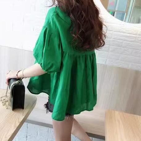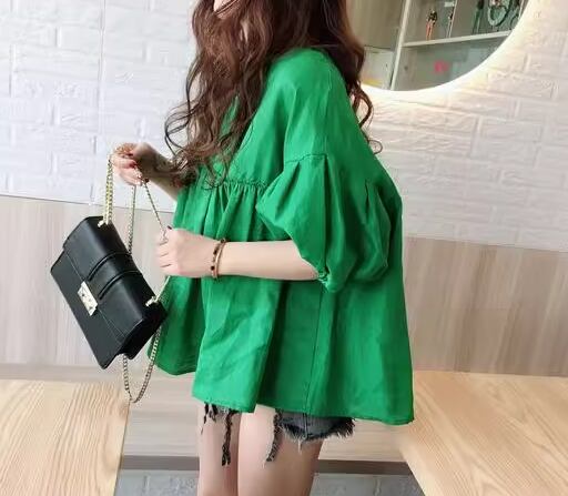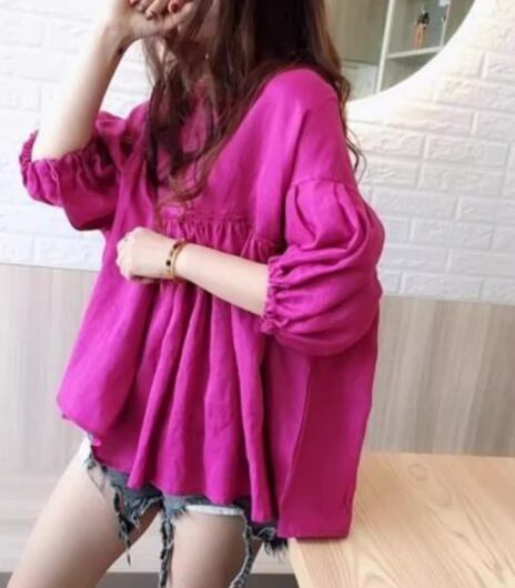 レディース トップス カットソー プルオーバー ミドル丈 5分袖 ボリューム袖 バルーン袖 ランタンスリーブ ラウンドネック フェミニン ふわふわ 切り替えデザイン リネン 綿 コットン かわいい シンプル カジュアル おしゃれ レトロ ラフ ガーリー ルーズ 存在感 キュート ラグジュアリー 派手 芸術的 華やか 無地 夏 デート お出かけ 楽ちん 体型カバー 普段使い 着回し ゆったり ゆる フリーサイズ 大きめ ホワイト ピンク グリーン