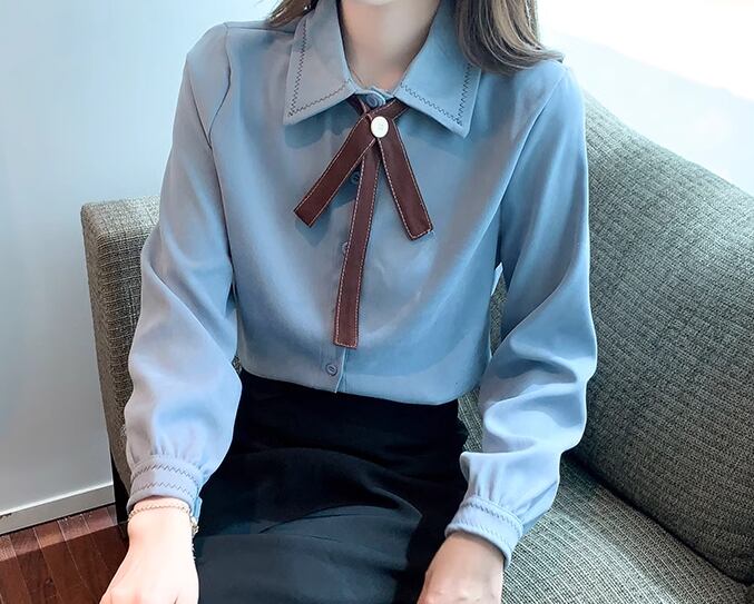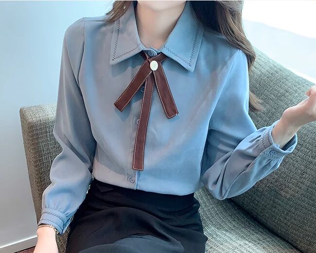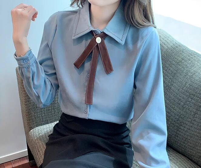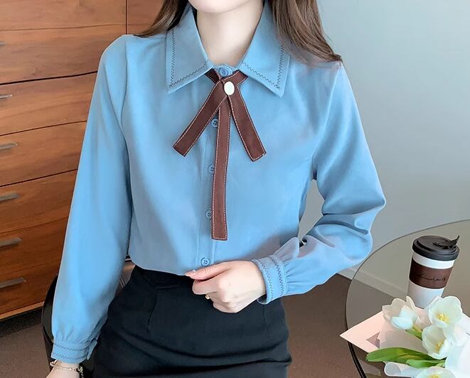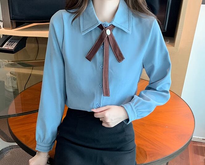 レディース トップス シャツ ミドル丈 長袖 襟付き ポロカラー ストレート フェミニン 前開き ボタン かわいい 大人可愛い きれいめ シンプル カジュアル 上品 おしゃれ レトロ ガーリー エレガント キュート クラシカル 知的 清潔感 シック 高級感 スタイリッシュ 優しい 穏やか 無地 春 秋 デート お出かけ 普段使い 着回し 清楚 S M L XL ブルー アプリコット