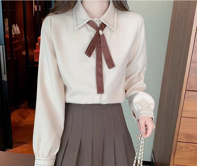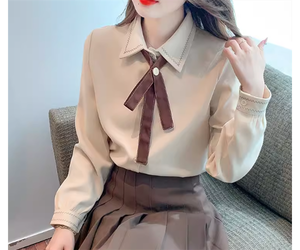 胸元のブラウンのリボンがおしゃれで可愛いアイテムです。