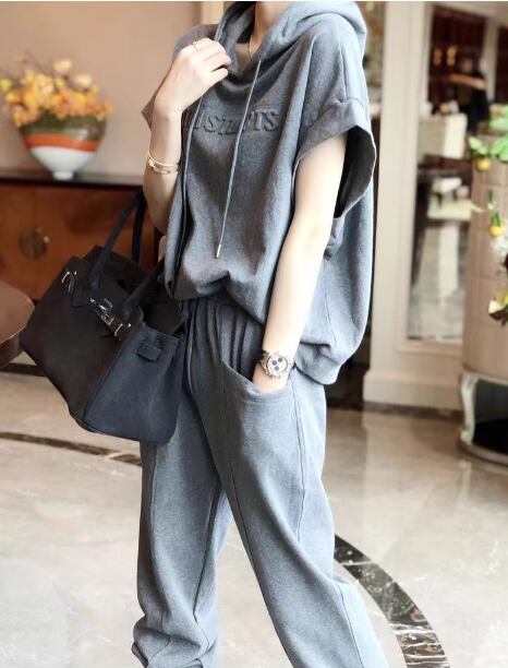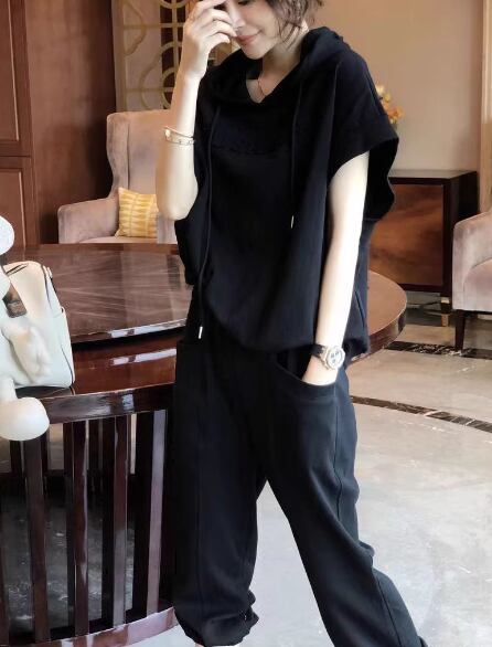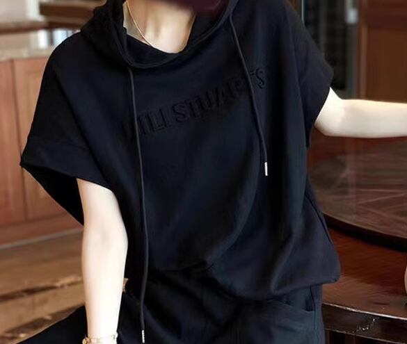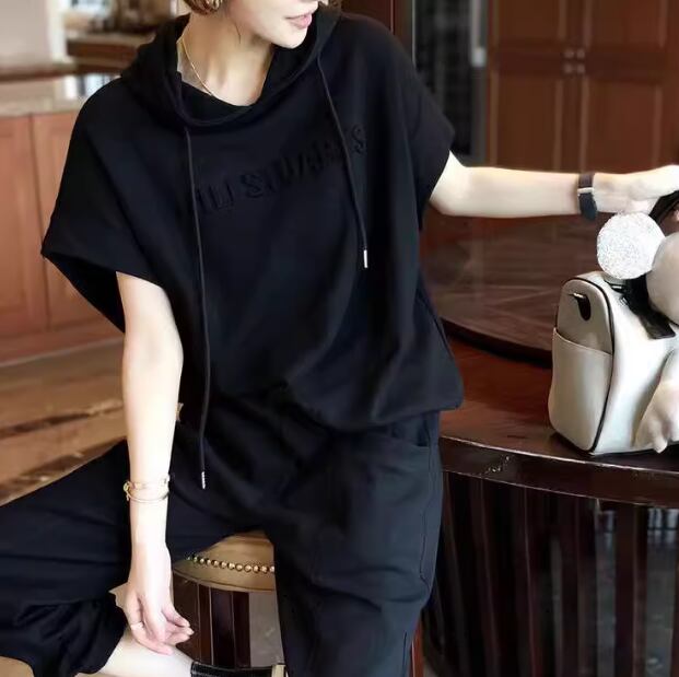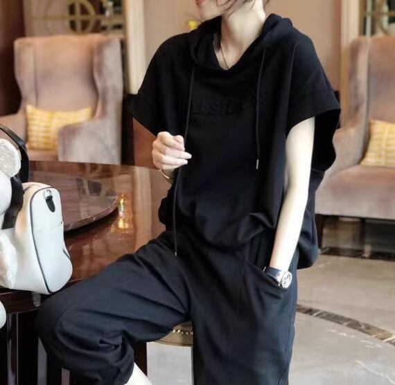 二点セット 上下セット ツーピース レディース パンツ プルオーバー スウェット セットアップ スポーツウェア フルレングス 半袖 ストリート ポケット ウエストゴム フード 綿 コットン かわいい 大人可愛い シンプル カジュアル おしゃれ かっこいい ラフ ボーイッシュ スポーティー ルーズ クール アクティブ リラックス ハンサム シック スタイリッシュ 文字 テキスト 英語 夏 普段使い 着回し L XL 大きいサイズ ゆったり ゆる 大きめ ブラック グレー