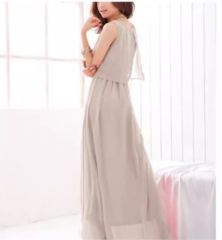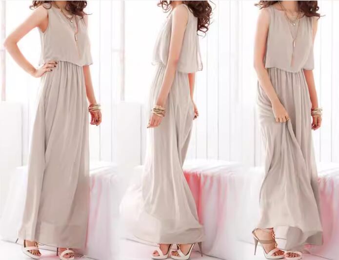 レディース ドレス ワンピース パーティードレス ウェディング パーティー 結婚式 二次会 披露宴 ロング マキシ 袖なし ノースリーブ ラウンドネック フレア シフォン フリル 切り替えデザイン ウエストゴム プルオーバー きれいめ シンプル カジュアル 大人可愛い 上品 おしゃれ かっこいい クール エレガント セクシー 華やか ナチュラル 高級感 無地 イベント ホテル レストラン デート 食事会 会食 女子会 夏 M L XL ゆったり ベージュ ブラック グリーン レッド