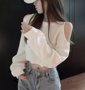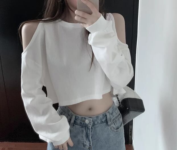 肩出しデザイン×クロップド丈が今っぽくておしゃれな長袖Tシャツ。
