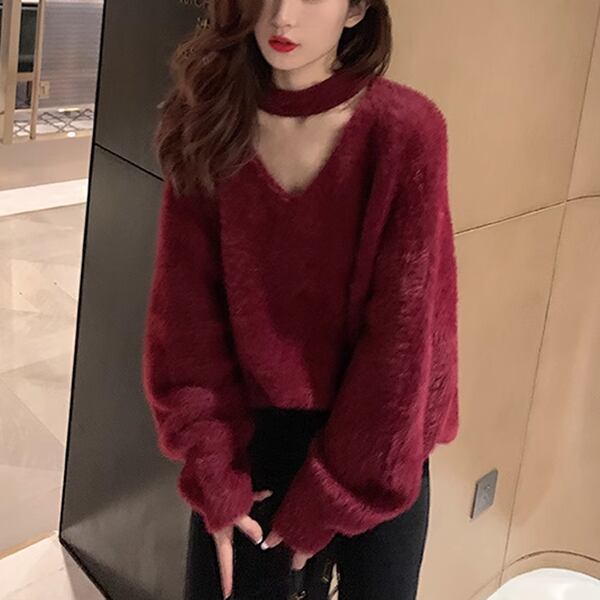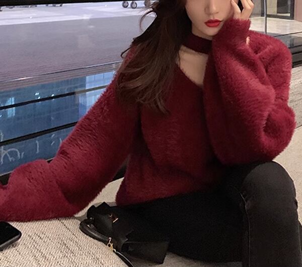 4色展開 ミンクベルベットモヘアセーター レディース トップス セーター ミドル丈 長袖 Vネック ホルターネック ワイド オーバーサイズ フェミニン ふっくら 伸縮性 モヘア ベルベット ウール ステッチ ヘッジ 大人可愛い 上品 おしゃれ こなれ感 ルーズ エレガント オフィスカジュアル 柔らかい 無地 春 秋 冬 10代 20代 オフィス 通勤 イベント レストラン ショッピング カフェ 韓国 防寒 普段使い 動きやすい ゆったり