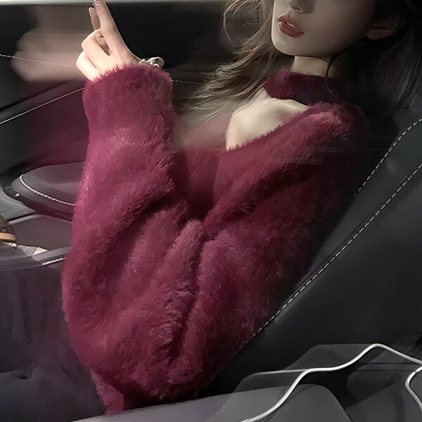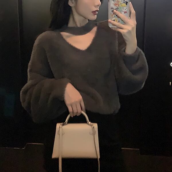 ミンクベルベット素材で包まれるセーターが登場。ホルターネックとVネックをあわせたの絶妙なデザインが、女神のようなスタイルを演出。怠惰なスタイルで、ゆるさを快適に過ごす贅沢な時間を提供します。モヘアの柔らかな風合いが、ルーズなアウターを完璧に主張する一着。貴女のおしゃれを彩る、女性らしいトップスをお楽しみください。