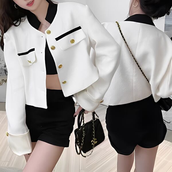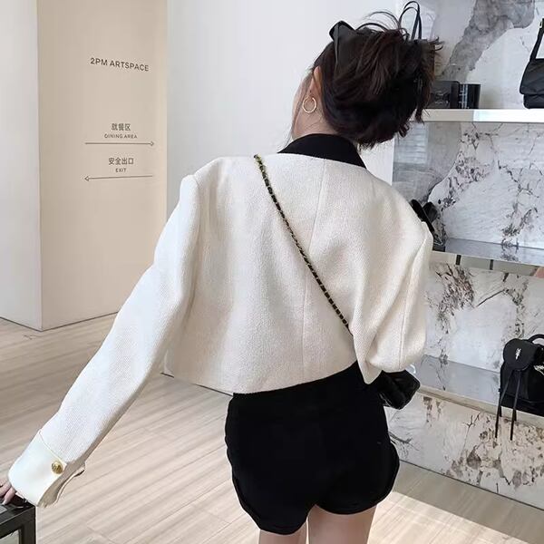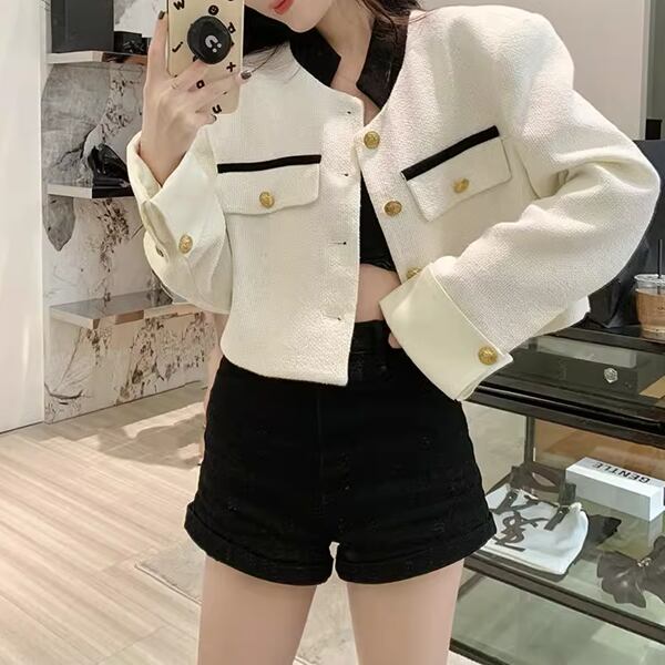 ハイエンド/ニッチ気質のルーズジャケット レディース トップス ジャケット アウター 上着 ブレザー ショート クロップド丈 長袖 カフスリーブ スタンドカラー スリム 細身 ストレート スマート ポケット ボタン 綿 ニッチ ハイエンド 大人可愛い カジュアル 上品 おしゃれ ルーズ エレガント フォーマル 爽やか 無地 春 秋 冬 10代 20代 オフィス 通勤 イベント ライブ コンパ 韓国 着回し モテ トレンド フィット