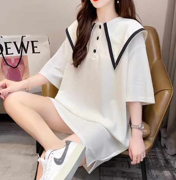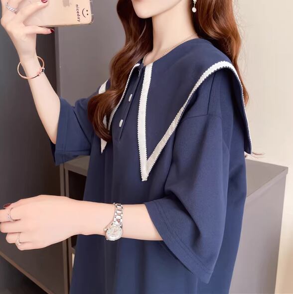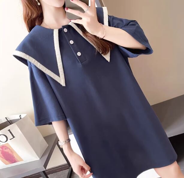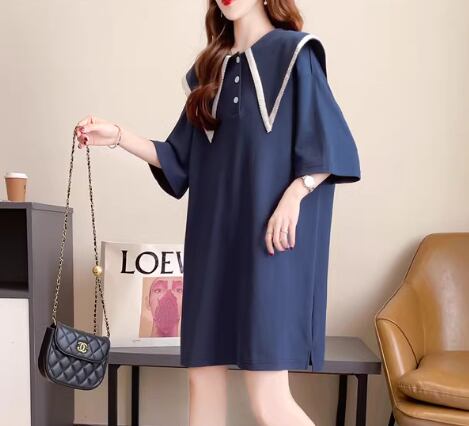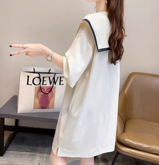 レディース ワンピース 膝丈 膝上 ミドル丈 半袖 襟付き ビッグカラー 薄手 かわいい 大人可愛い シンプル カジュアル おしゃれ レトロ ラフ ガーリー ルーズ キュート アクティブ シック 無地 夏 10代 20代 学生 デート お出かけ 楽ちん 体型カバー 普段使い トレンド 流行 M L XL ゆったり ゆる 大きめ オーバーサイズ ホワイト グレー ブルー