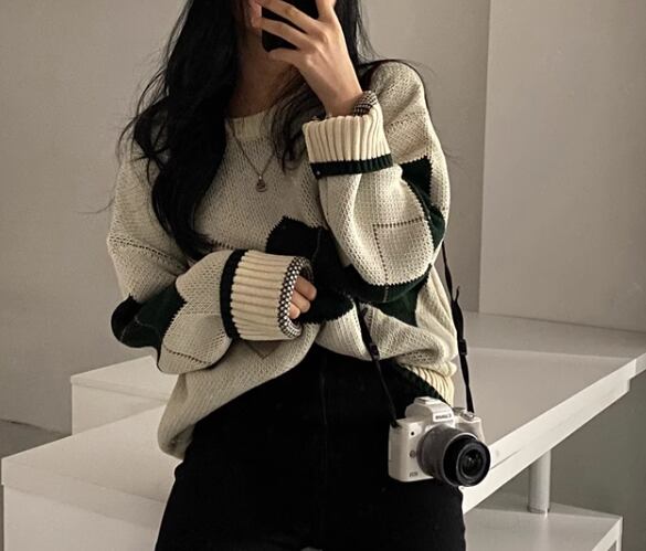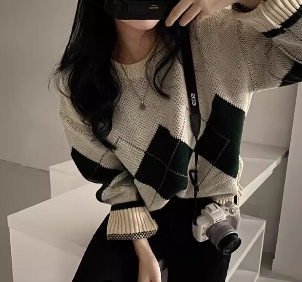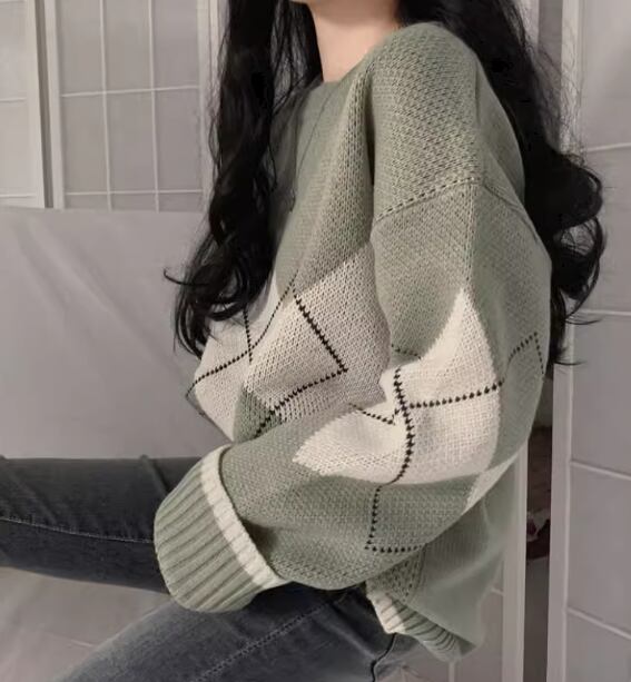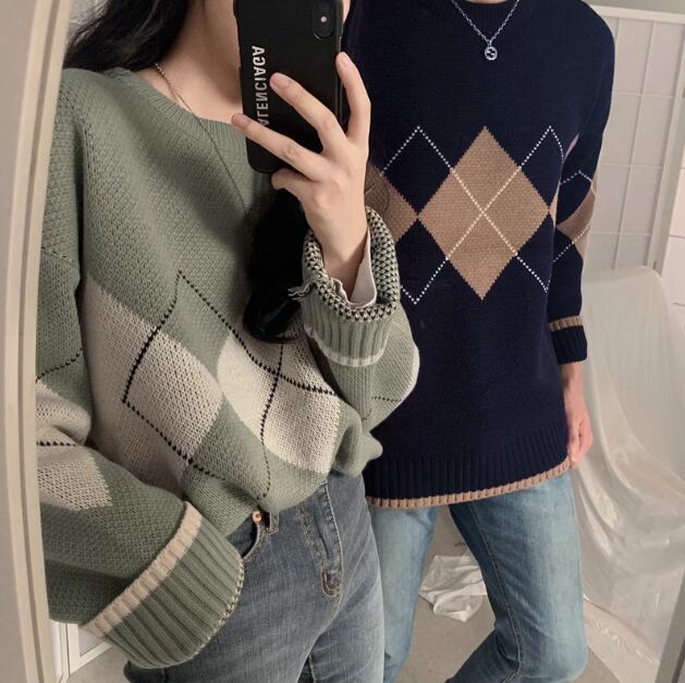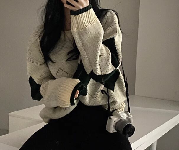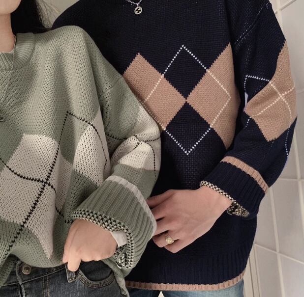 メンズ 男女兼用 ユニセックス レディース トップス ニット セーター プルオーバー ミドル丈 長袖 ラウンドネック かわいい 大人可愛い シンプル カジュアル 上品 おしゃれ かっこいい レトロ ボーイッシュ ルーズ クール エレガント ナチュラル シック 高級感 ダイヤ アーガイル 菱形 秋 冬 カップル デート お出かけ お揃い 韓国 体型カバー 普段使い 着回し トレンド 流行 ゆったり フリーサイズ ホワイト ブラック グリーン