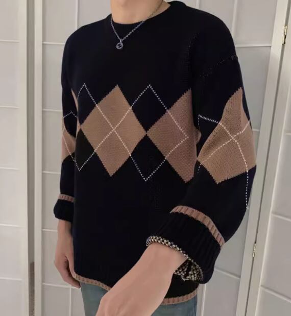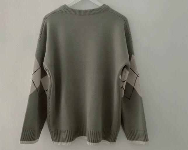 シックなカラーとアーガイル柄が大人可愛い長袖のニットセーター。
