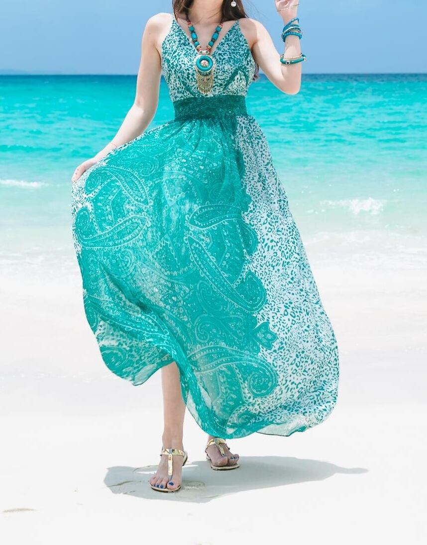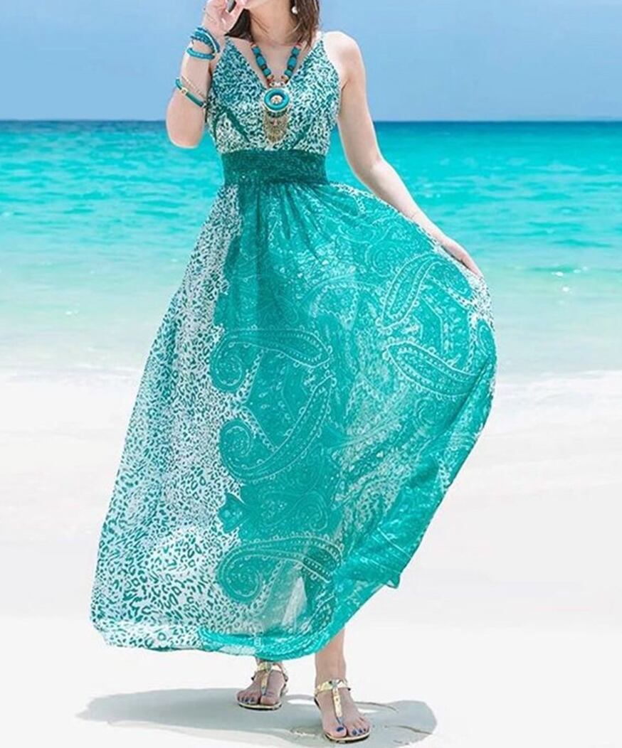 鮮やかなカラーと異国風なペイズリー柄が可愛いロングワンピースです。