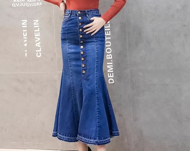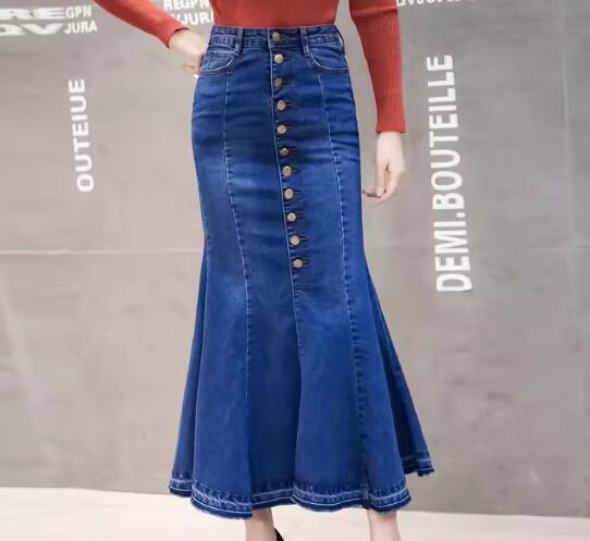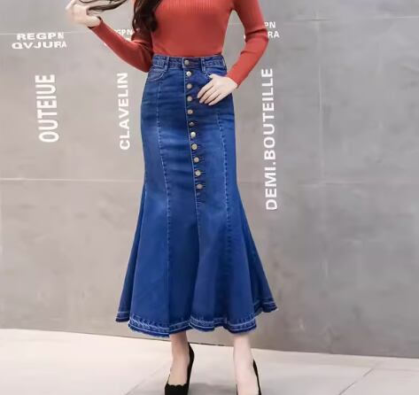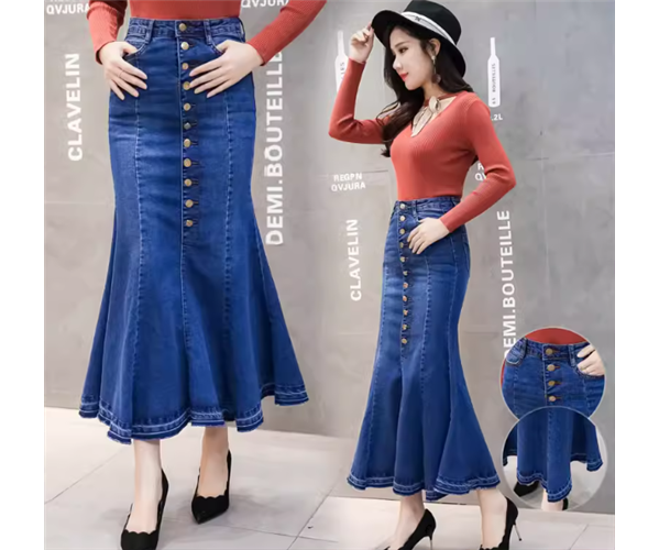女性らしいマーメイドラインが美しいロング丈のデニムスカート。