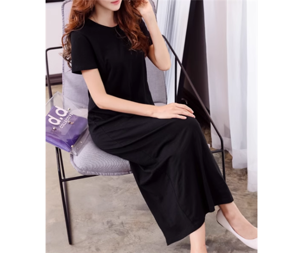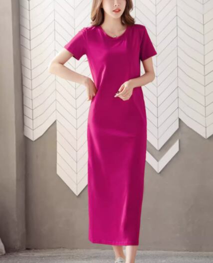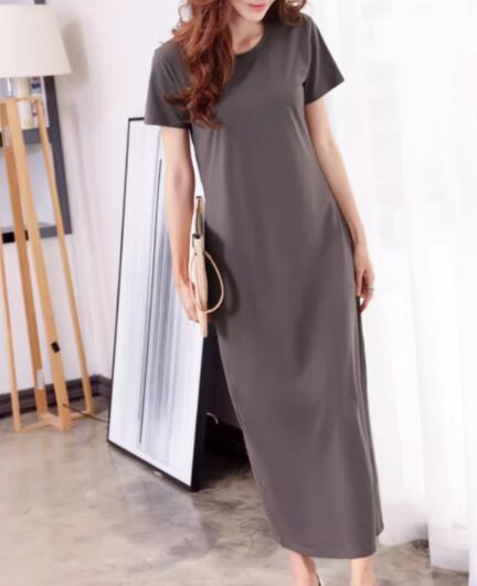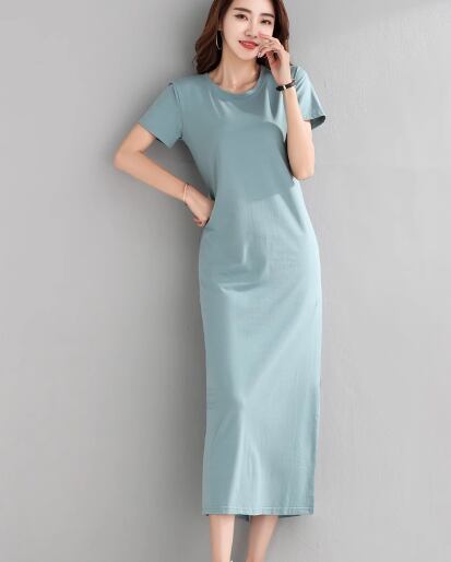 レディース ワンピース プルオーバー ロング マキシ 半袖 ラウンドネック ストレート Iライン スリット 綿 コットン 大人可愛い シンプル カジュアル 上品 おしゃれ かっこいい レトロ ラフ ルーズ クール 抜け感 ナチュラル セクシー リラックス ハンサム シック 高級感 無地 夏 デート お出かけ 楽ちん 体型カバー 普段使い 着回し S M L XL 大きいサイズ ブラック グレー レッド ネイビー ライトブルー