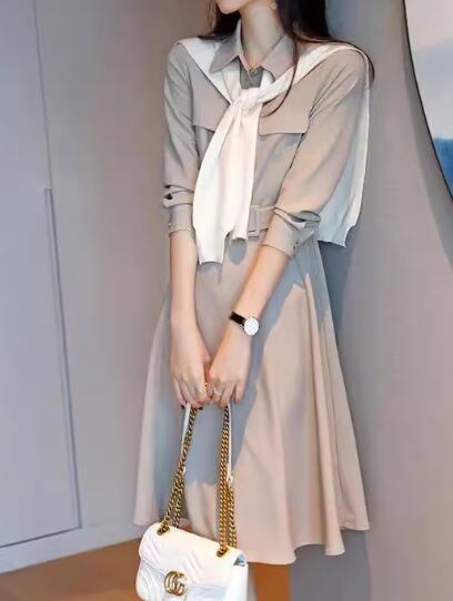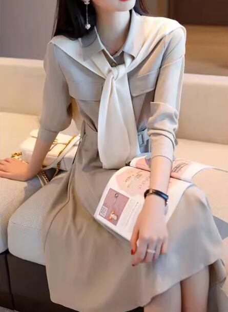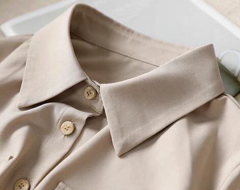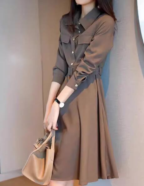 上品で落ち着いた色合いとシンプルで洗練されたデザインが大人可愛い長袖のシャツワンピース。