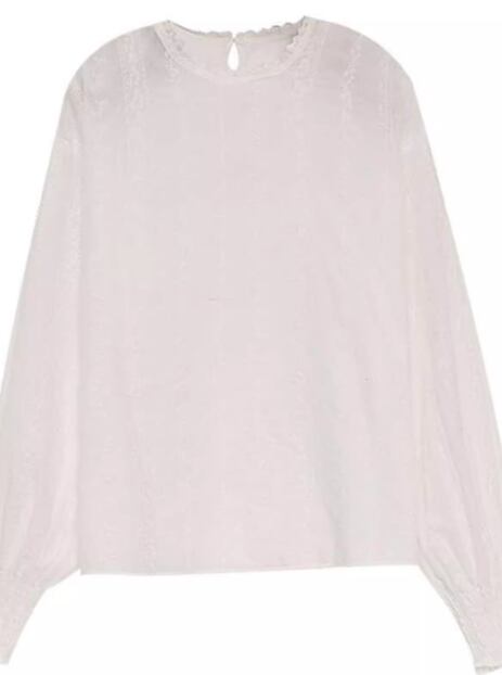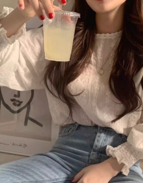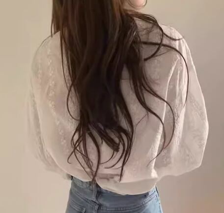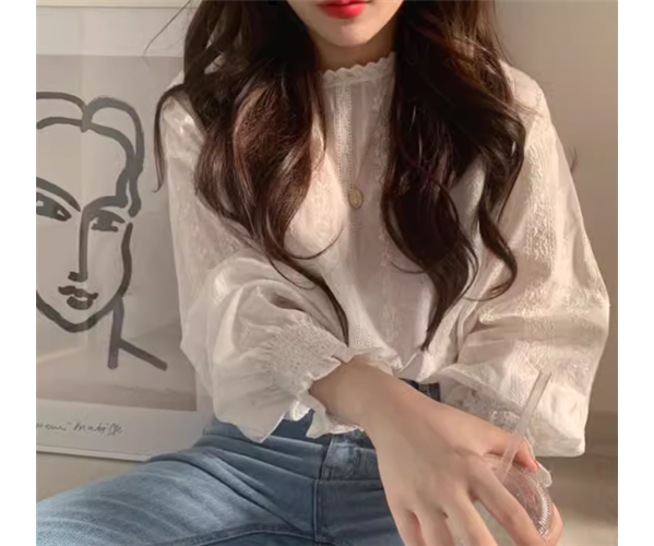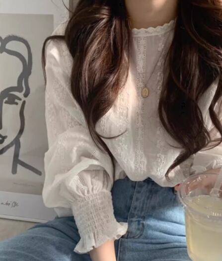 上品で女性らしいレースが魅力的な長袖のシフォンシャツ。