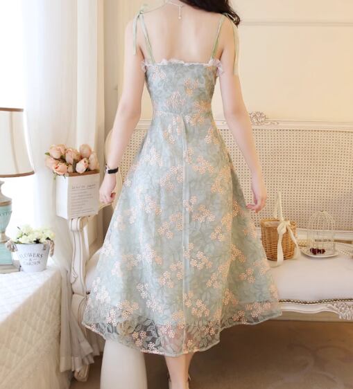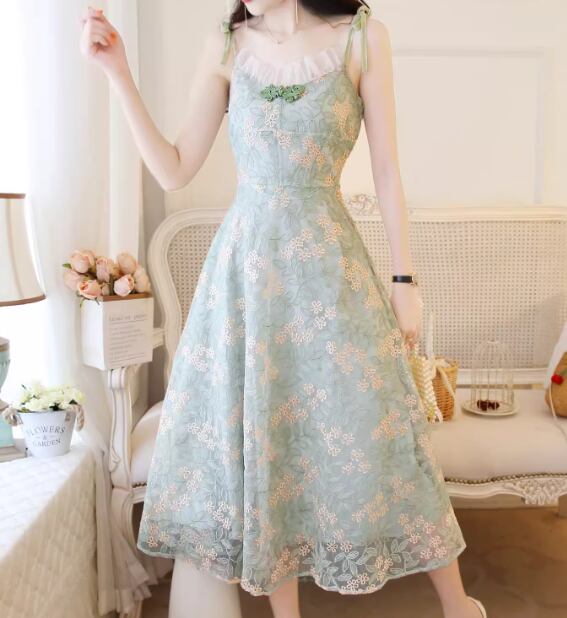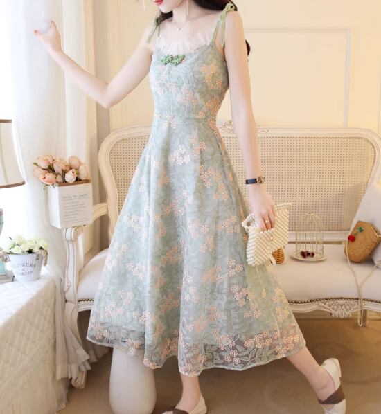 レディース ワンピース プルオーバー キャミワンピース ミモレ ロング 袖なし ノースリーブ フェミニン レース 刺繍 ファスナー かわいい 大人可愛い きれいめ カジュアル 上品 おしゃれ ガーリー エレガント 主役級 存在感 ラブリー キュート プリンセス ラグジュアリー 豪華 シック 高級感 華やか 優しい 穏やか フェアリー 夏 デート お出かけ 普段使い モテ 清楚 S M L XL パステル グリーン