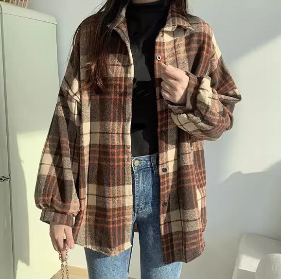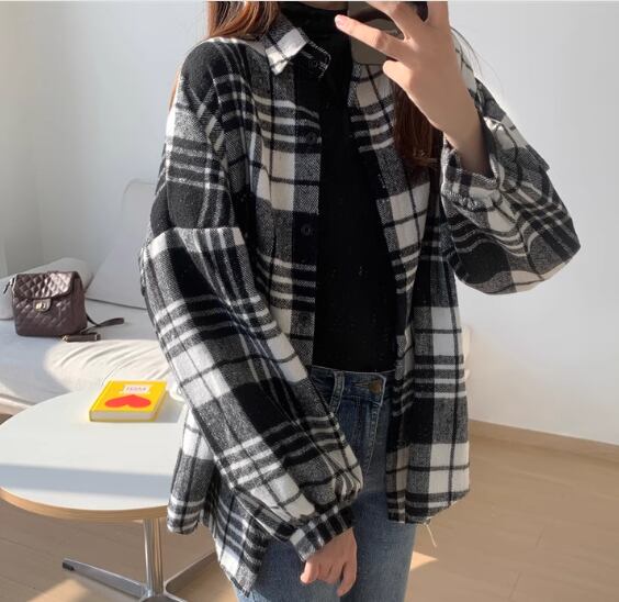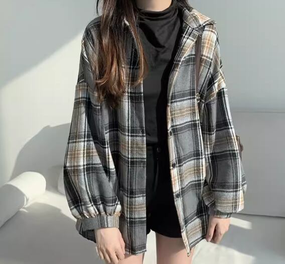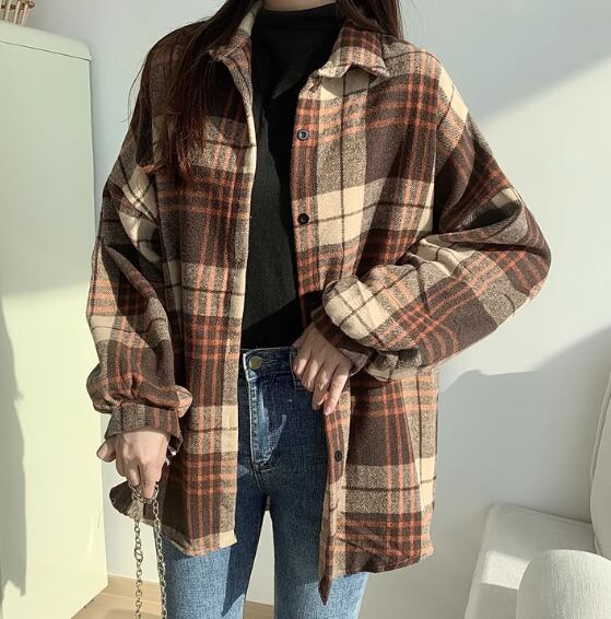 レディース トップス シャツ ウール 羽織 ミドル丈 長袖 ボリューム袖 バルーン袖 ランタンスリーブ 襟付き ポロカラー 前開き ボタン 厚手 裏起毛 大人可愛い カジュアル 上品 おしゃれ かっこいい レトロ メンズライク ボーイッシュ ルーズ クール エレガント ナチュラル 知的 ハンサム シック 高級感 スタイリッシュ チェック 春 秋 デート お出かけ 普段使い 着回し トレンド 流行 ゆったり ゆる フリーサイズ 大きめ オーバーサイズ ブラック ブラウン グレー ブルー