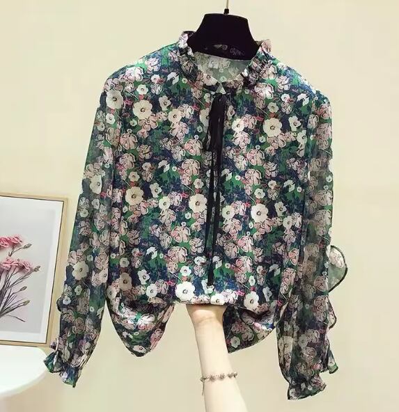 レディース トップス シャツ ブラウス カットソー プルオーバー ミドル丈 長袖 フェミニン シフォン フリル リボン 薄手 かわいい 大人可愛い きれいめ カジュアル 上品 おしゃれ レトロ ガーリー エレガント 存在感 キュート ラグジュアリー 豪華 シック 高級感 華やか 優しい 穏やか フェアリー 柔らかい 花柄 フラワー 春 夏 デート お出かけ 日焼け防止 日焼け対策 S M L XL イエロー グリーン
