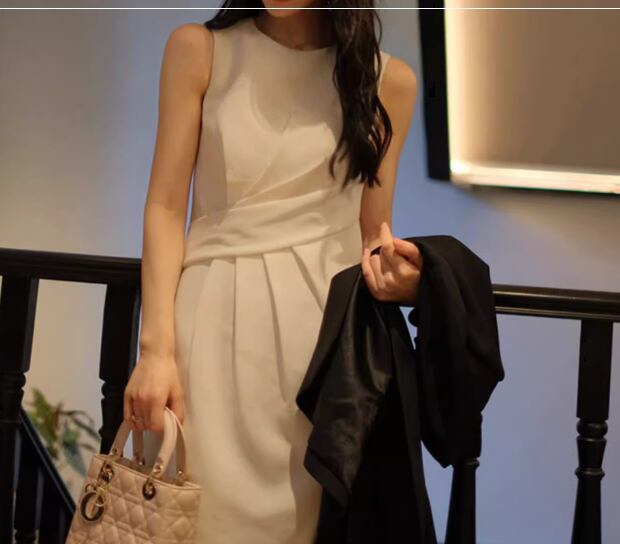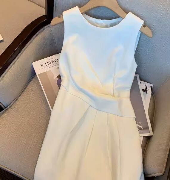 レディース ドレス ワンピース パーティードレス ミモレ 膝丈 ミドル丈 袖なし ノースリーブ ラウンドネック 細身 きれいめ シンプル カジュアル 大人可愛い 上品 おしゃれ レトロ クール エレガント クラシック 清楚 セクシー シック ナチュラル ラグジュアリー 高級感 セレブリティ フェミニン 女性らしい こなれ感 無地 イベント ホテル レストラン デート 食事会 会食 女子会 夏 S M L スリム 小さめ ホワイト