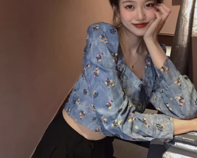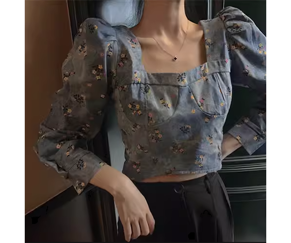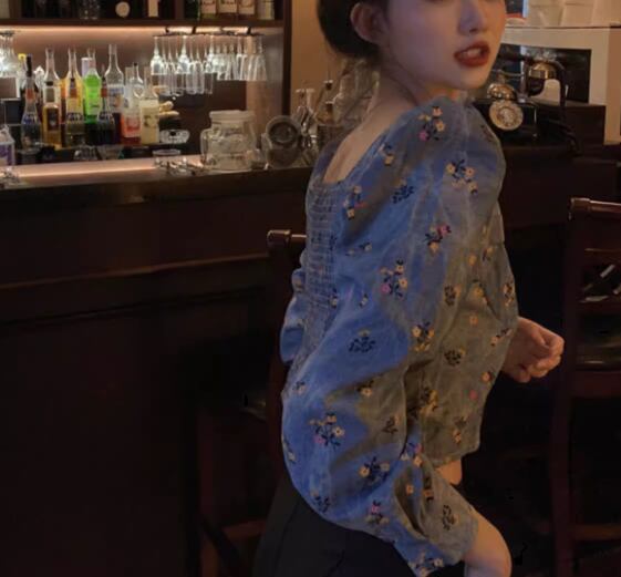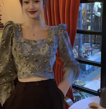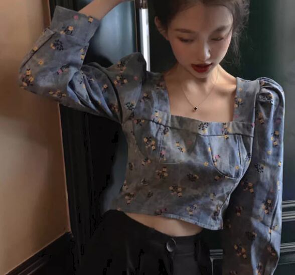 レディース トップス カットソー プルオーバー ショート クロップド丈 長袖 パフスリーブ パワーショルダー スクエアネック スリム 細身 フェミニン かわいい 大人可愛い カジュアル おしゃれ こなれ感 ラフ ガーリー 抜け感 ラブリー キュート ラグジュアリー アクティブ セクシー シック 高級感 優しい 穏やか 花柄 フラワー プリント 小花柄 秋 10代 20代 学生 デート お出かけ 普段使い 着回し トレンド 流行 S M L XL 大きいサイズ ブルー