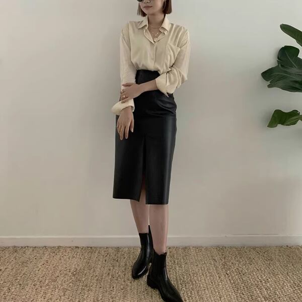 ハイウエストでバッグヒップを強調するスリットスカート。ストレートなシルエットで、ミドル丈のデザインが大人の女性らしさを演出。PUレザー素材が上品な光沢を放ち、高級感を醸し出します。カジュアルながらもロング丈のスカートは、様々なシーンで活躍しています。洗練されたスタイルをお求めの貴女にぴったりのアイテムです。