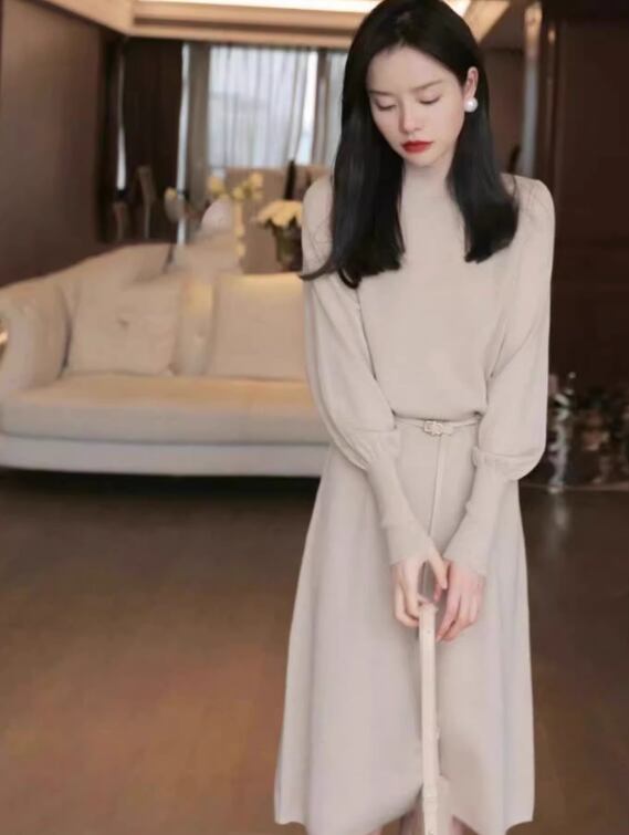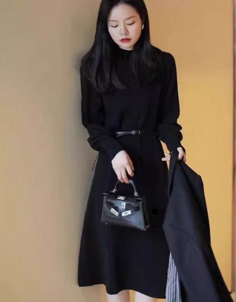 レディース ワンピース ミモレ ロング 長袖 スリム 細身 ストレート ニット かわいい 大人可愛い きれいめ シンプル おしゃれ こなれ感 ラフ メンズライク マニッシュ ボーイッシュ クール モード系 とろみ感 抜け感 無地 秋 冬 デート お出かけ 韓国 オルチャン コーデ 楽ちん プチプラ 普段使い 着回し モテ 清楚 トレンド インスタ映え 定番