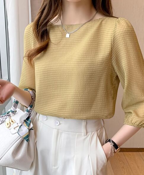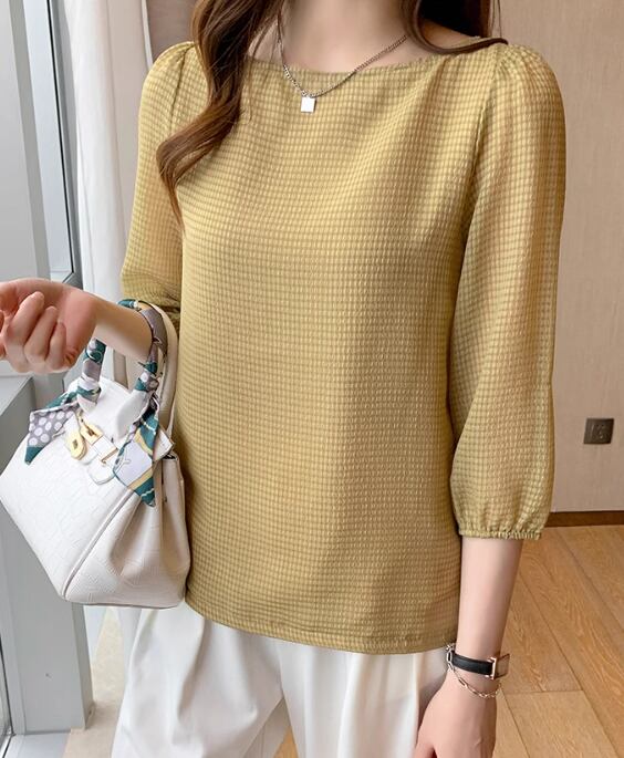 シンプルで上品なデザインに、さりげなくチェックがアクセントを添えたレディーストップス。スクエアネックが女性らしい印象を与え、大人可愛いおしゃれスタイルを演出します。ストレッチ性のある素材で着心地も楽ちん、普段使いから特別な日まで幅広く活躍する一枚です。