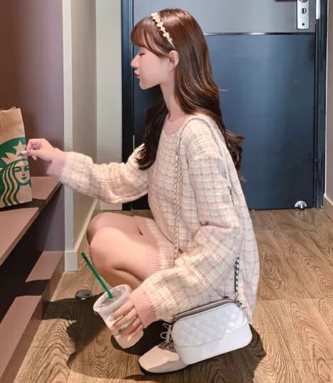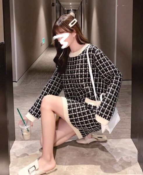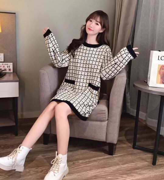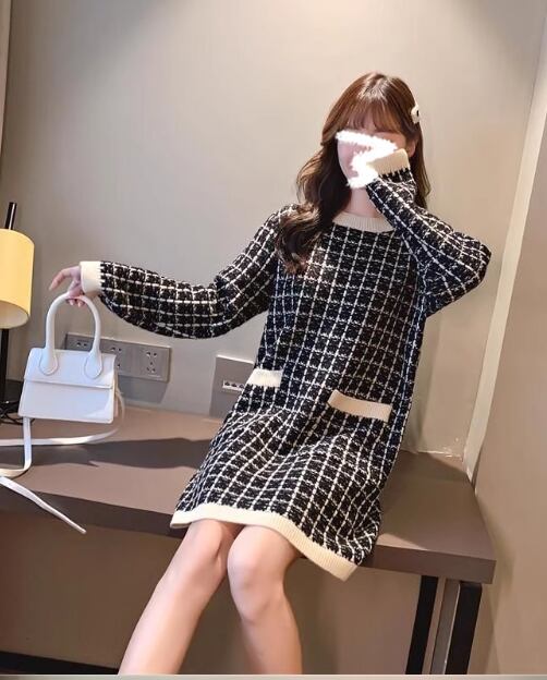レディース ワンピース 長袖 Uネック ニット かわいい 大人可愛い きれいめ シンプル 上品 おしゃれ こなれ感 ガーリー クール モード系 エレガント ラブリー チェック オルチャン コーデ 楽ちん 普段使い 着回し モテ 清楚 トレンド インスタ映え