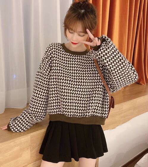 オシャレな女性におすすめのトップス、ニットプルオーバーをご紹介します。Uネックで首元をすっきり見せることができ、ボリューム袖がトレンド感を演出しています。総柄デザインがカジュアルながらも可愛らしさを引き立て、大人女性にもお楽しみいただけるアイテムです。