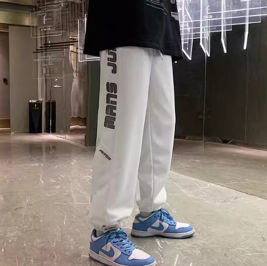 メンズ パンツ ボトムス スウェット ジャージ スポーツウェア フルレングス ストリート ヒップホップ ストレッチ 伸縮性 カジュアル おしゃれ かっこいい ラフ スポーティー ルーズ クール アクティブ ワイルド ハンサム シック 高級感 スタイリッシュ 文字 テキスト 英語 春 秋 デート お出かけ 普段使い 着回し M L XL ホワイト ブラック グレー