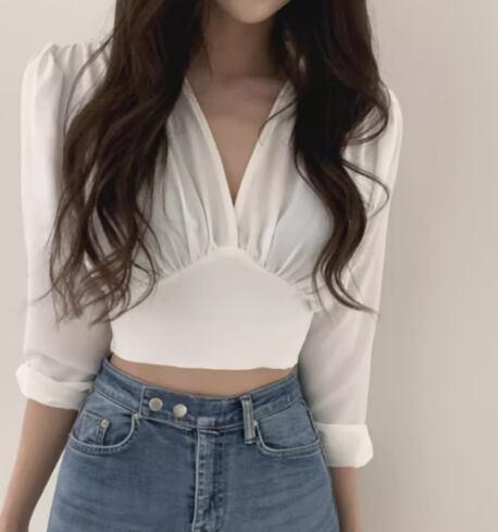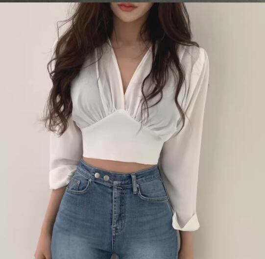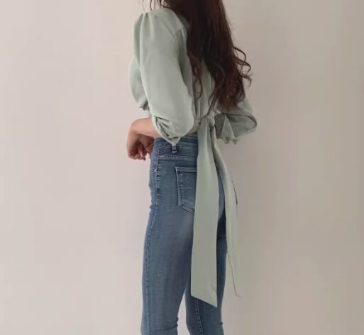 レディース トップス シャツ ブラウス カットソー プルオーバー ショート 長袖 Vネック スリム 細身 フェミニン シフォン バックリボン かわいい 大人可愛い きれいめ シンプル カジュアル おしゃれ こなれ感 ラフ ガーリー 個性的 抜け感 ラブリー キュート ラグジュアリー アクティブ セクシー シック スタイリッシュ 無地 春 10代 20代 学生 デート お出かけ 韓国 普段使い 着回し トレンド 流行 フリーサイズ ホワイト ブラック カーキ グリーン