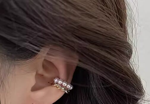 存在感のあるパール×サークルデザインのイヤーカフ。