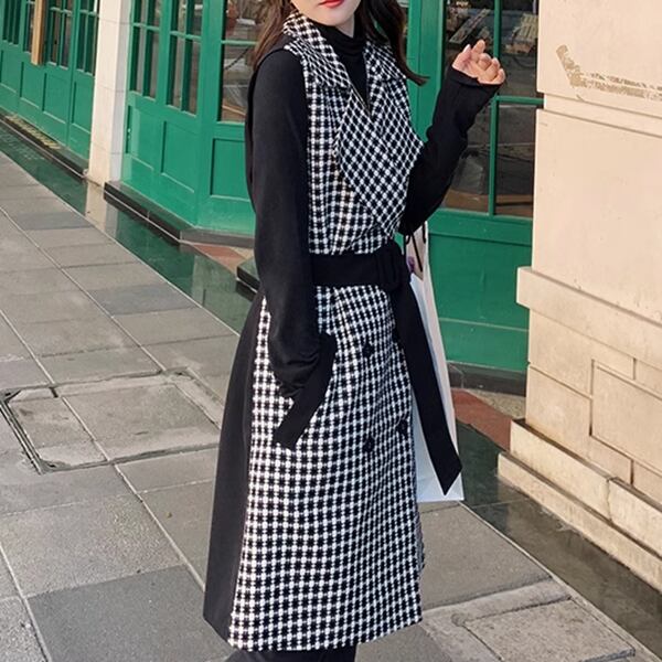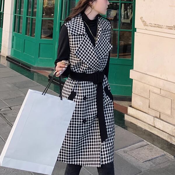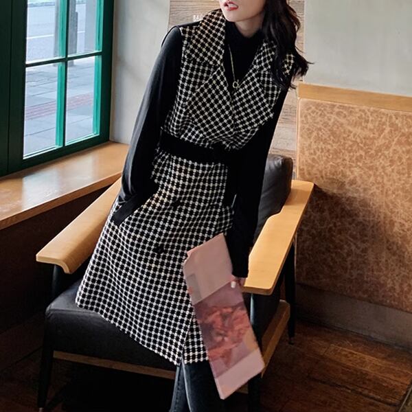 ミッドレングスノースリーブベスト レディース トップス ジャケット ベスト ミディアム 膝丈 ミドル丈 袖なし ノースリーブ Vネック 襟付き スーツカラー セミフレア ストレート フォーマル フェミニン ベルト ウエストマーク バイカラー ベルト付き カジュアル 上品 おしゃれ エレガント モダン フォーマル オフィスカジュアル チェック 春 秋 20代 30代 オフィス 通勤 イベント ガーデン ショッピング カフェ 韓国