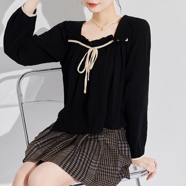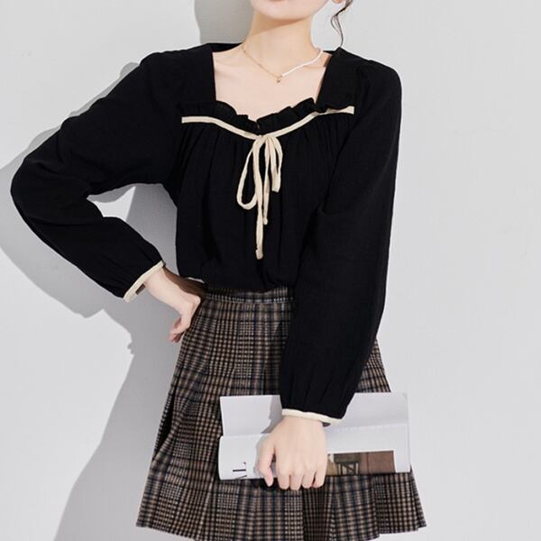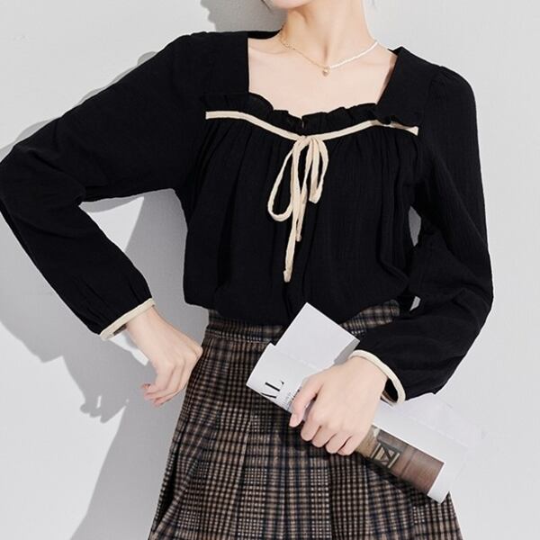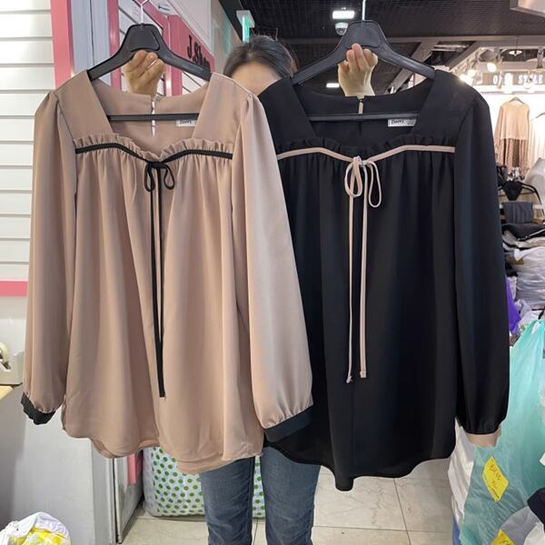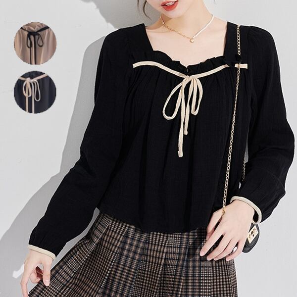 2カラー プリーツリボンシフォンシャツ レディース トップス シャツ ブラウス 長袖 スクエアネック 襟なし ノーカラー ワイド Aライン フォーマル フェミニン プリーツ シフォン リボン ファスナー ボタンなし 薄手 大人可愛い シンプル 上品 おしゃれ ガーリー モード系 エレガント フォーマル 清潔感 オフィスカジュアル 無地 春 夏 秋 20代 30代 オフィス 通勤 イベント レストラン ショッピング カフェ ドライブ 韓国 体型カバー ゆったり 大きめ オーバーサイズ